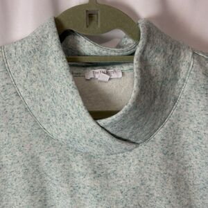 T BY TALBOTS Sweatshirt Fleece Cotton Blend Speckled V-Neck Pullover Aqua Blue M