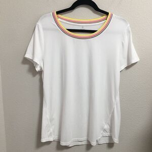 T BY TALBOTS Women Supersoft Jersey Striped Ringer White Tee T-Shirt Size Large