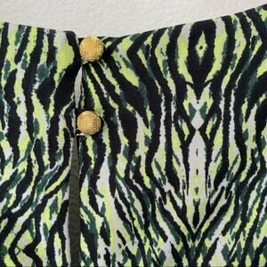 T Bags Green Print Mini Dress small in excellent condition. Measurements laying flat are chest 20 inches across and length 32 1/2 inches long
