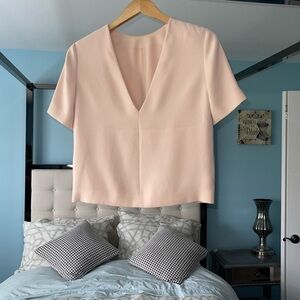 T By Alexander Wang Beige Welt Pocket Detail Short Sleeve Blouse Low V Back 4