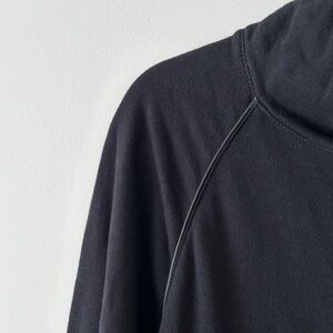Excellent condition: One irregularity in stitching on one sleeve as shown in last photo. No stains, holes, fading, rips, pilling, or other flaws present.