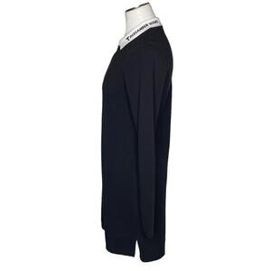 Quarter zip polo dress from T by Alexander Wang. This dress features a contrasting collar, a printed logo, a front zip fastening, long sleeves, a short length, a high low hem and a ribbed hem and cuffs.