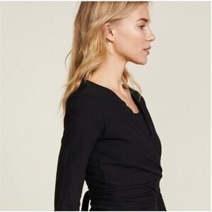 Alexander Wang T Faux Tie Wrap Front Long Sleeve Mini Dress in Black. Long sleeve dress with a wrap front. Gives the illusion of a dress with a built in cardigan over it. Great used condition.