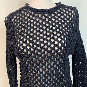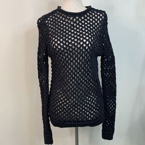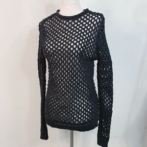 T By Alexander Wang Top Black Crochet Long Sleeve Sweater Open Weave Size XS