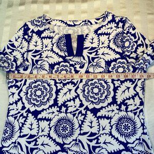 T By TALBOTS Blue Floral UPF 50+ Sun Protection Stretch Knit Top Lp PETITE