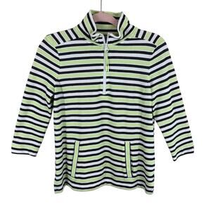 T By Talbots Cotton Blend Striped Terry Cloth 3/4 Sleeve 1/4 Zip Pullover Size P