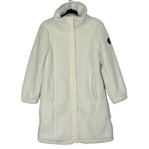 T By Talbots Cozy Sherpa Coat Long Neutral Minimalist Ivory Size MP Petite
