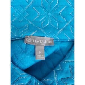 T By Talbots Mockneck metallic Quilted Sweatshirt sz M snowflake detail nordic