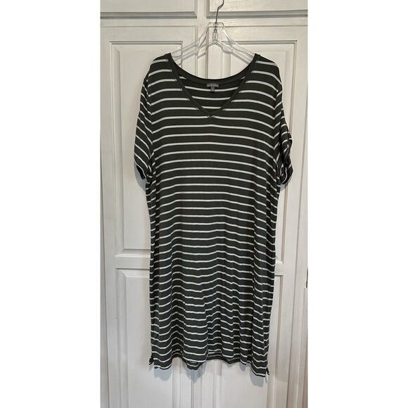T By Talbots Plus Striped Shift Midi Dress Size 3x Cold Shoulder Stretch Comfort