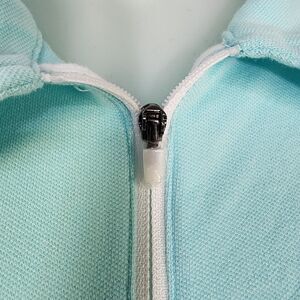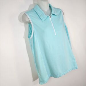 T By Talbots Polo Shirt Woman's Medium Blue 1/4 Zip UPF 50 Sun Protection Golf