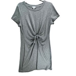 T By Talbots Tie Front T Shirt Dress L Gray Alamedia Stripe Stretch Feminine NEW