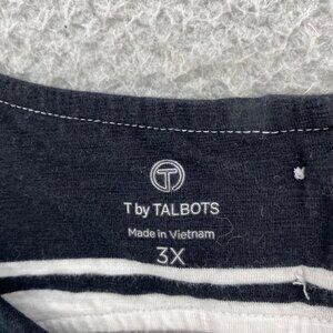 T By Talbots Top Womens 3X Plus Black Striped Cutout Back 3/4 Sleeves Stretch