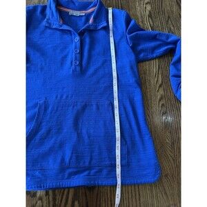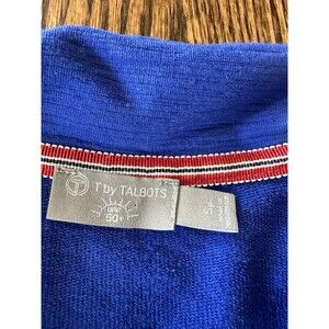 T By Talbots Top Womens Small Petite Blue Pullover Shirt UPF 50 Roll Tab Pocket