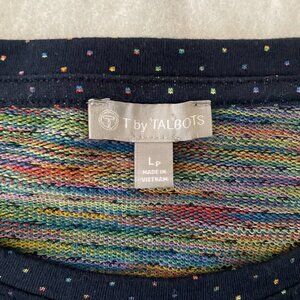 T By Talbots Womens Navy Blue Rainbow Dots Button Side French Terry Pullover PL