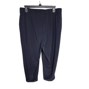 T By Talbots Women Crop Pant MP Blue Pull On Elastic Waist Tapered Cuffed Pocket