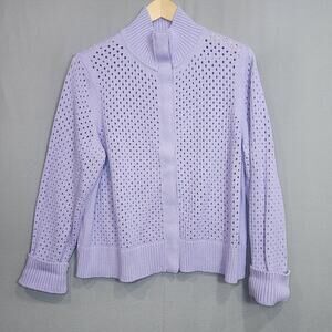 T By Talbots Women’s Purple Cotton Blend Snap Front Cardigan Sweater Sz XL