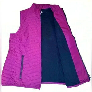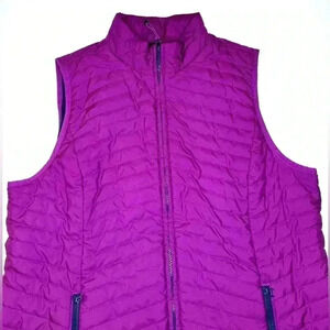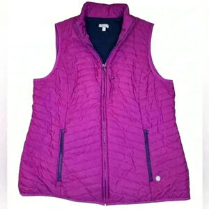 T By Talbots Womens Quilted Vest Collared Size Large Purple Full Zip