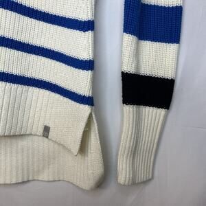 T By Talbots Womens Sweater Size MP Ivory Blue Green Stripes Thumb Hole Side Zip