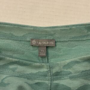 T By Talbots Camo French Terry Pullover Top Shirt Green/Teal 3/4 Sleeve Size XS