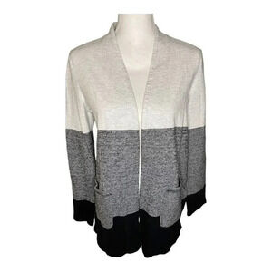 T By Talbots Women’s Small Black White Color Block Long Sleeve Open Front Cardig