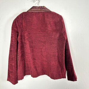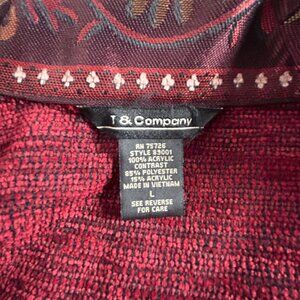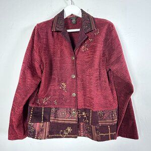 T & Company Womens Woven Embroidered Button-Front Jacket Large Red Lightweight