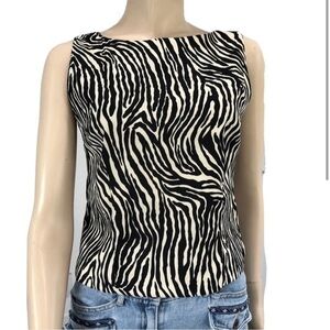 T & Company zebra sleeveless button on the back top/blouse / everyday/confortable Size:6P Color: black, cream Material:polyester, spandex Style:815G18 Offers are welcome Let me know if you have any questions please #1080210 /5023/10023 T & Company zebra sleeveless button on back top/blouse.