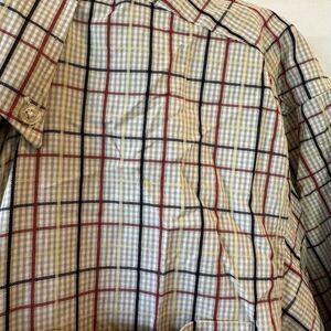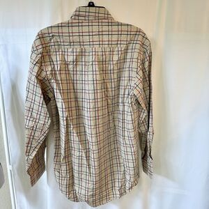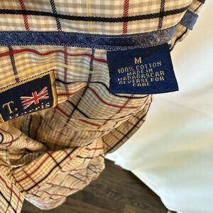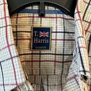 T. Harris London Button Down Shirt Men Medium Plaid Long Sleeve Tan Red Cotton