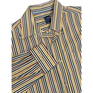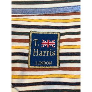 T Harris London Long Sleeve Striped Button Down Mens XL 100% Cotton