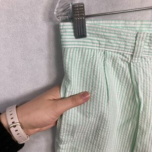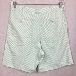 T Harris London Shorts Mens Sz 34 Green Striped Seersucker 100% Cotton Casual