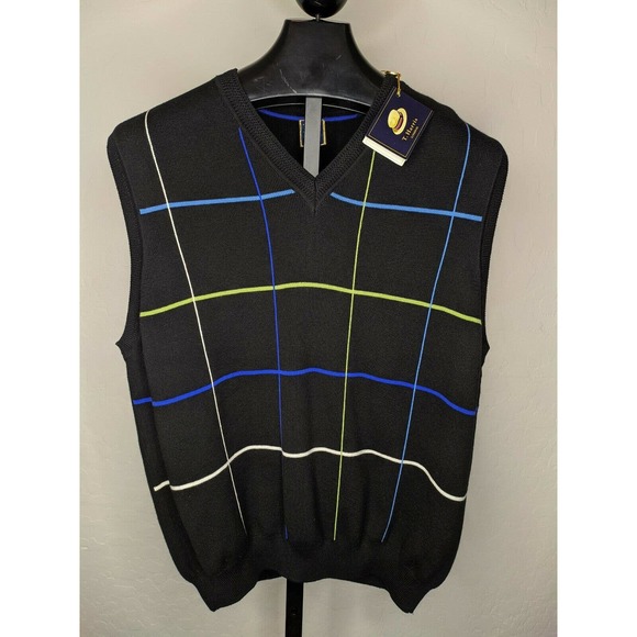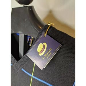 T Harris London Mens Black Grid Sleeveless 100% Cotton Sweater Vest Size L