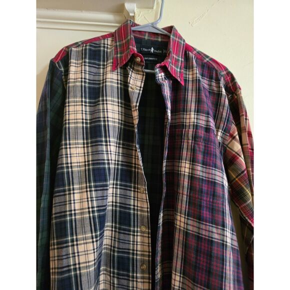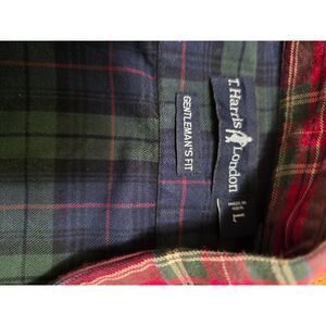 T. Harris of London Gentleman Fit Multi-Plaid Light Flannel Button Men's SZ L. Excellent Condition, NO stains or tears. Plaid is multi-pattern/color. Arms are two different colors plaid. The shirt is flannel, but it is lightweight flannel. Colors are red/blue/green/peach/tan.