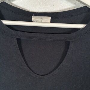 T. La Anthropologie Black Cut Out Raw Edge Tee Size Small