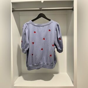 T. La Puff-Sleeve Pullover Shirt French Terry Blue tomato Embroidery 2X