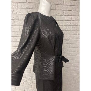 • T. Milano Women Petite Black Animal Print 2 Piece Skirt Suit Size 6P