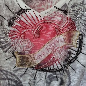 T Party Heart/Wings Graphic Embellished Bling Tee