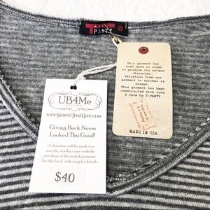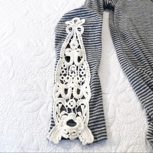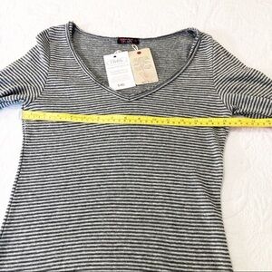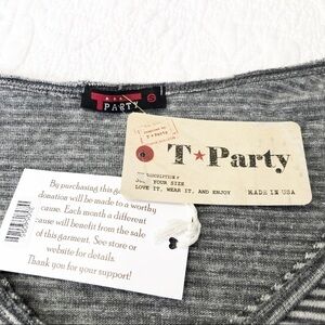 T Party NWT Embroidered Sleeve Gray Stripe Tee - S