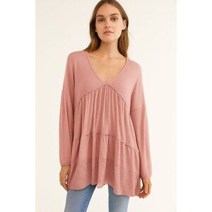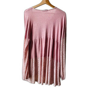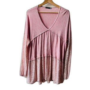 T Party Women's Boho Tunic Top with Lace Long-sleeves Misty Rose Size Medium