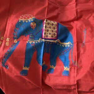 T Shina Shinawatra Elephant Print Thai Silk Scarf Red Designer Textile bohemian tribal 35"×36”
