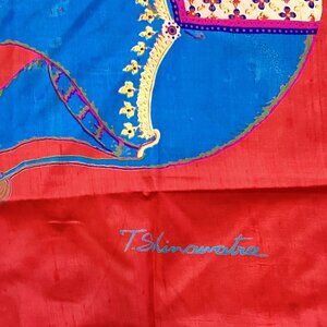 T Shina Shinawatra Elephant Print Thai Silk Scarf Red Designer Textile 35"×36”