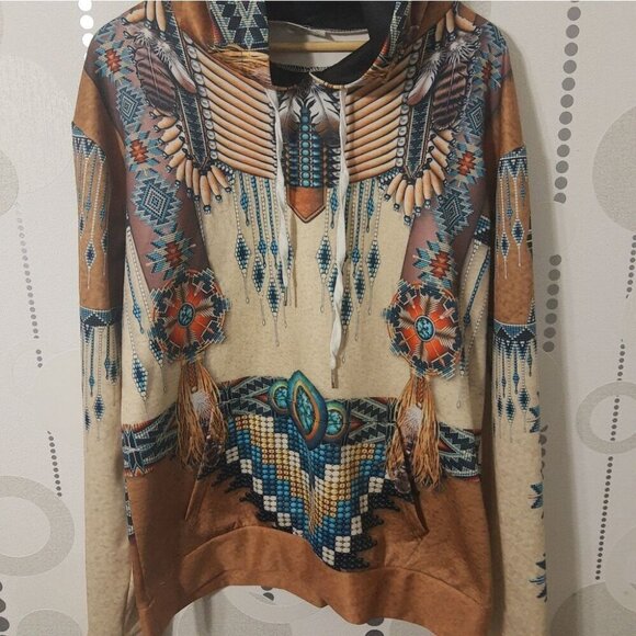 T Shirt Hoodie Native American Indian Size Large Fashion Tribal Trend Tee Soft