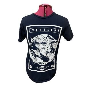 T- Shirt Vtg Medium Sofspun Overslept NASA Black Graphic Fruit Of The Loom {48}.