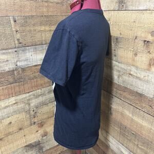 The product is a vintage medium size t-shirt featuring a soft spun NASA graphic design in black, made by Fruit of the Loom. This unisex t-shirt is perfect for those who appreciate retro style and space-themed fashion. The classic black color makes it versatile for both men and women to wear, while the regular fit ensures comfort. This t-shirt is a unique addition to any wardrobe, showcasing a fun and nostalgic graphic that is sure to be a conversation starter. Thank you for shopping with Integrity Sales. L.