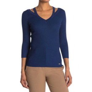 T TAHARI 3/4 Sleeve V-Neck Cutout Pullover - XS