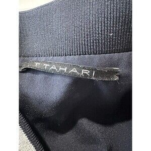 T TAHARI GALE Metallic NAVY OUTERWEAR BOMBER Jacket MEDIUM