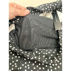 TAHARI skirt Womens Size M Black White Polka Dot Slit Leg Tummy Control Classic Chic Condition: New with tags Size: M Color: Black with Ivory dots Material: Shell: 67% Rayon, 29% Nylon, 4% Spandex; Tummy Control: 95% Nylon, 5% Spandex Features: Polka dot pattern, Slit leg, Tummy control panel, Pull-on design, Soft with a comfortable fit yet a chic look, Fitted style, Measurements: approximately Waist width 15.5" across without stretch Total length 28" Smoke Free Environment Tags: polka dot, skirt, pull-on, stretch, professional, versatile, sophisticated, workwear, modern, comfortable, elegant, stylish, business, school, church,