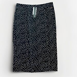 T TAHARI Midi Pencil Skirt Size M Black White Polka Dot Slit Leg Tummy Control