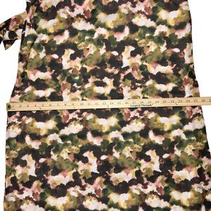 Elegant watercolor print sleeveless shift dress by T Tahari, featuring a mock neck with bow tie detail, Side zipper, and a knee length cut. Brand new with tags, it's a stylish choice for any occasion.