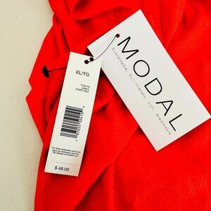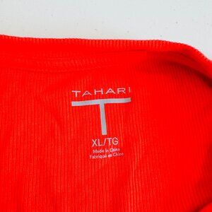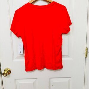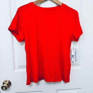 T TAHARI POPPY RED RIBBED KNIT CREW NECK SHORT SLEEVE BASIC T-SHIRT