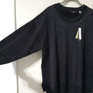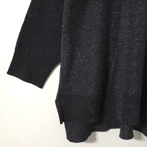 T TAHARI Plus Size Glitter Metallic Black Knit Crewneck Sweater, Longer Back, 1X