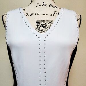 T TAHARI Sleeveless Studded Color Block Black White Knit Dress SIZE 4 NWT